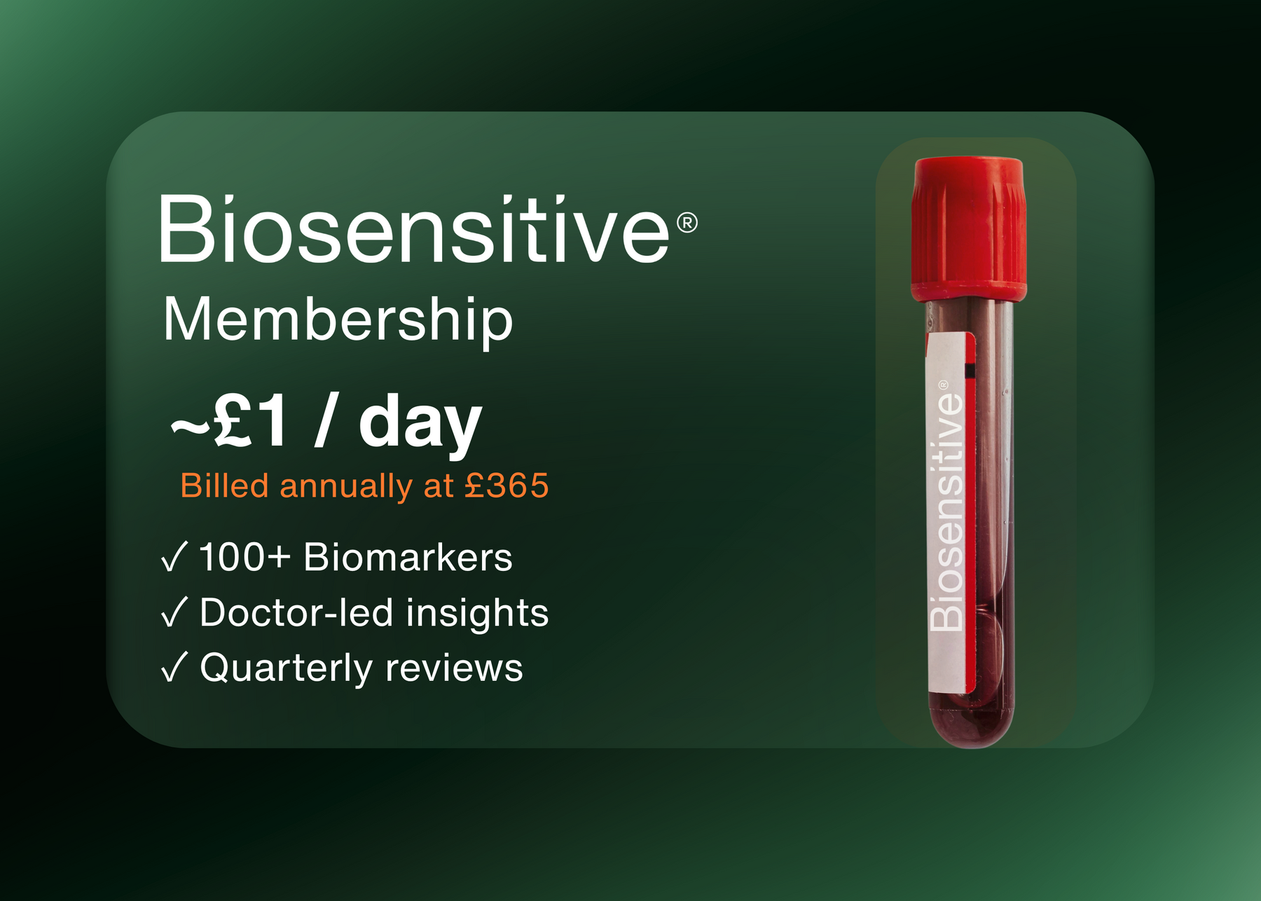 The Biosensitive Annual Health Membership analyses up to 100+ clinical biomarkers across key systems including cardiovascular health, metabolism, hormones, inflammation, thyroid function and nutrient status.