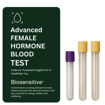 The Biosensitive® Advanced Female Hormone Blood Test helps you understand how hormonal, thyroid, and nutritional imbalances may be affecting your energy, mood, fertility, and overall wellbeing. This comprehensive test identifies key factors behind symptoms such as fatigue, irregular cycles, or low libido, giving you clear, science-led insight into your health. Once reviewed by our clinical team, your results include professional interpretation and guidance to help you restore hormonal balance, improve vitality, and make confident, informed decisions about your body.