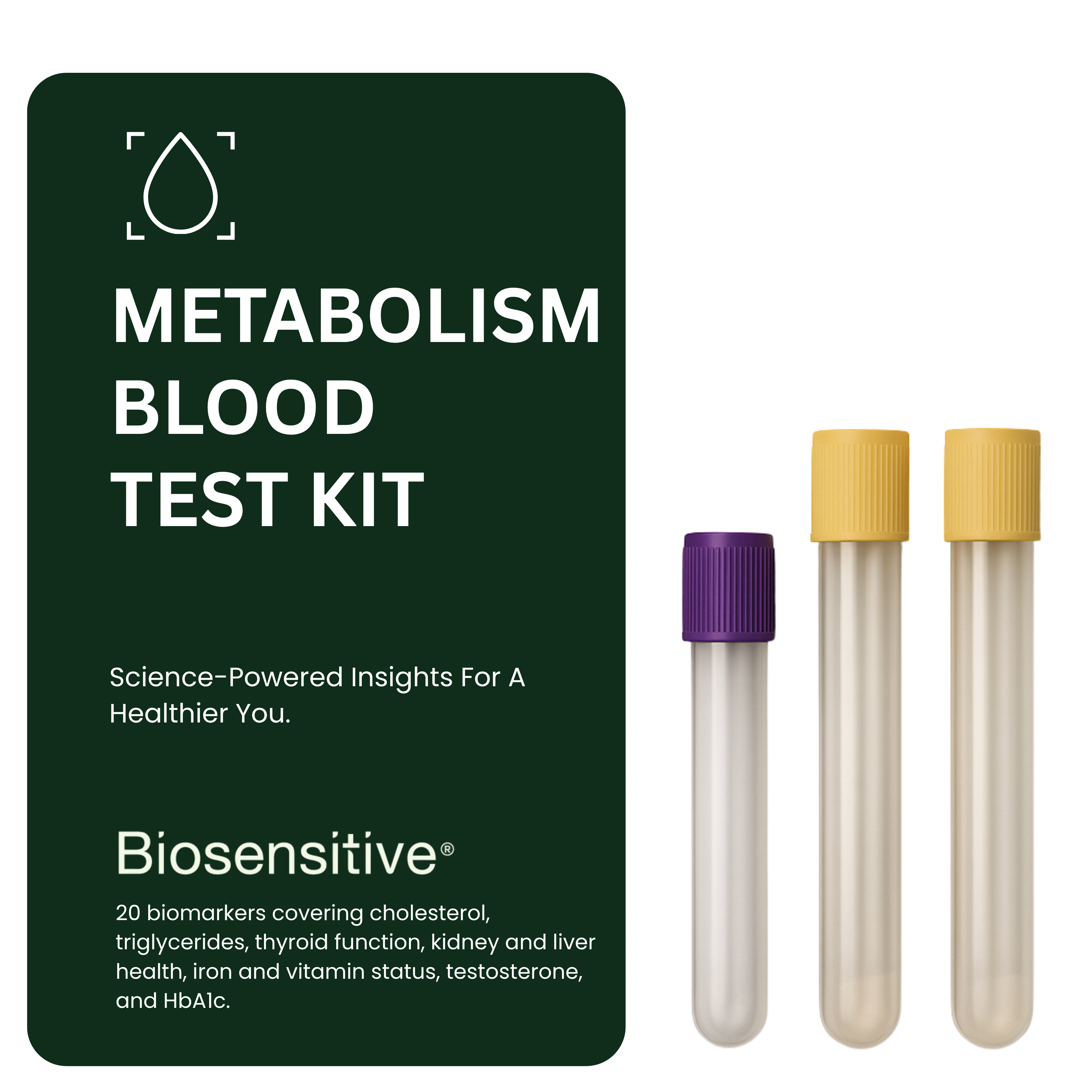 The Biosensitive® Metabolism Blood Test helps you understand how efficiently your body converts food into energy and identifies factors that may be slowing your progress. This clinical test analyses key hormonal, blood sugar, and nutrient markers linked to metabolic performance, energy, and weight management. Designed to highlight imbalances that impact fat loss or fatigue, it provides clear, science-led insights to help you optimise your diet, lifestyle, and overall metabolic health for lasting results.